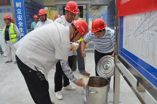 李師傅抹了把額頭的汗珠,快步走上前,拿起一塊冰鎮西瓜。剛咬一口,清甜的汁水就在嘴里蔓延開來,瞬間驅散了不少燥熱。“這西瓜比家里的還甜,吃下肚去,整個人都活過來了!”旁邊的工友們也紛紛圍了上來,有的端著綠豆湯小口喝著,有的拿起藿香正氣水揣進兜里,每個人的臉上都露出了滿足的笑容。