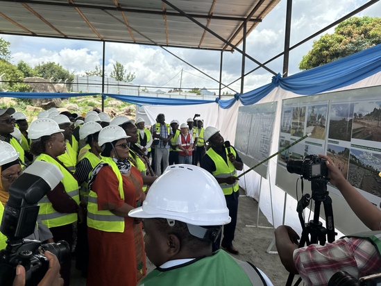 在項目現場,議長一行首先聽取了項目負責人關于工程進度、技術創新及社會效益的專題匯報。隨后,在嚴格的安全保障下,代表團深入施工一線實地考察。在施工現場,各類工程機械高效運轉,中坦兩國建設者緊密協作,呈現出一派繁忙而有序的施工景象。議長不時駐足詢問混凝土配比、管道鋪設等專業技術細節,對項目的高質量建設和先進理念給予了高度評價。